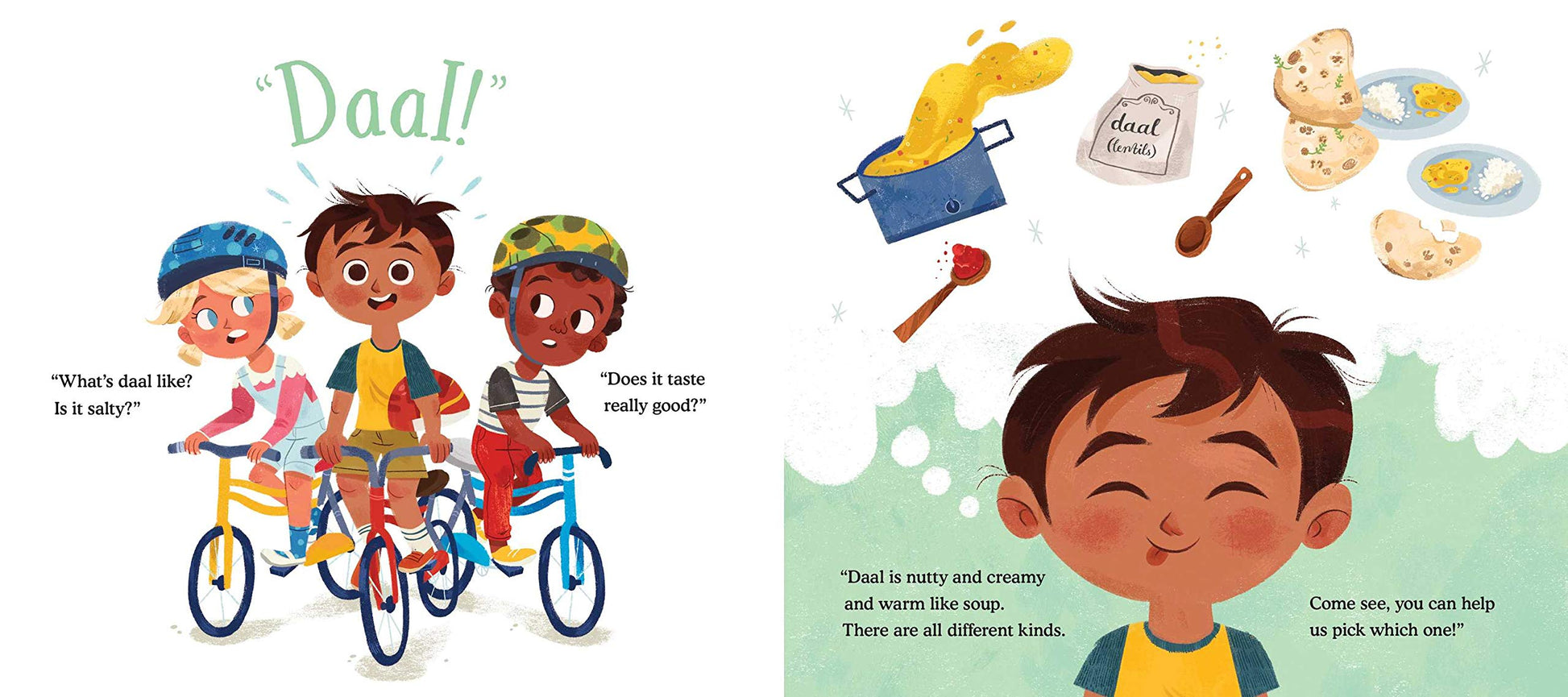 Six-year-old Bilal is excited to help his dad make his favorite food of all-time: daal! The slow-cooked lentil dish from South Asia requires lots of ingredients and a whole lot of waiting. Bilal wants to introduce his friends to daal. They've never tried it! As the day goes on, the daal continues to simmer, and more kids join Bilal and his family, waiting to try the tasty dish. And as time passes, Bilal begins to wonder: Will his friends like it as much as he does?