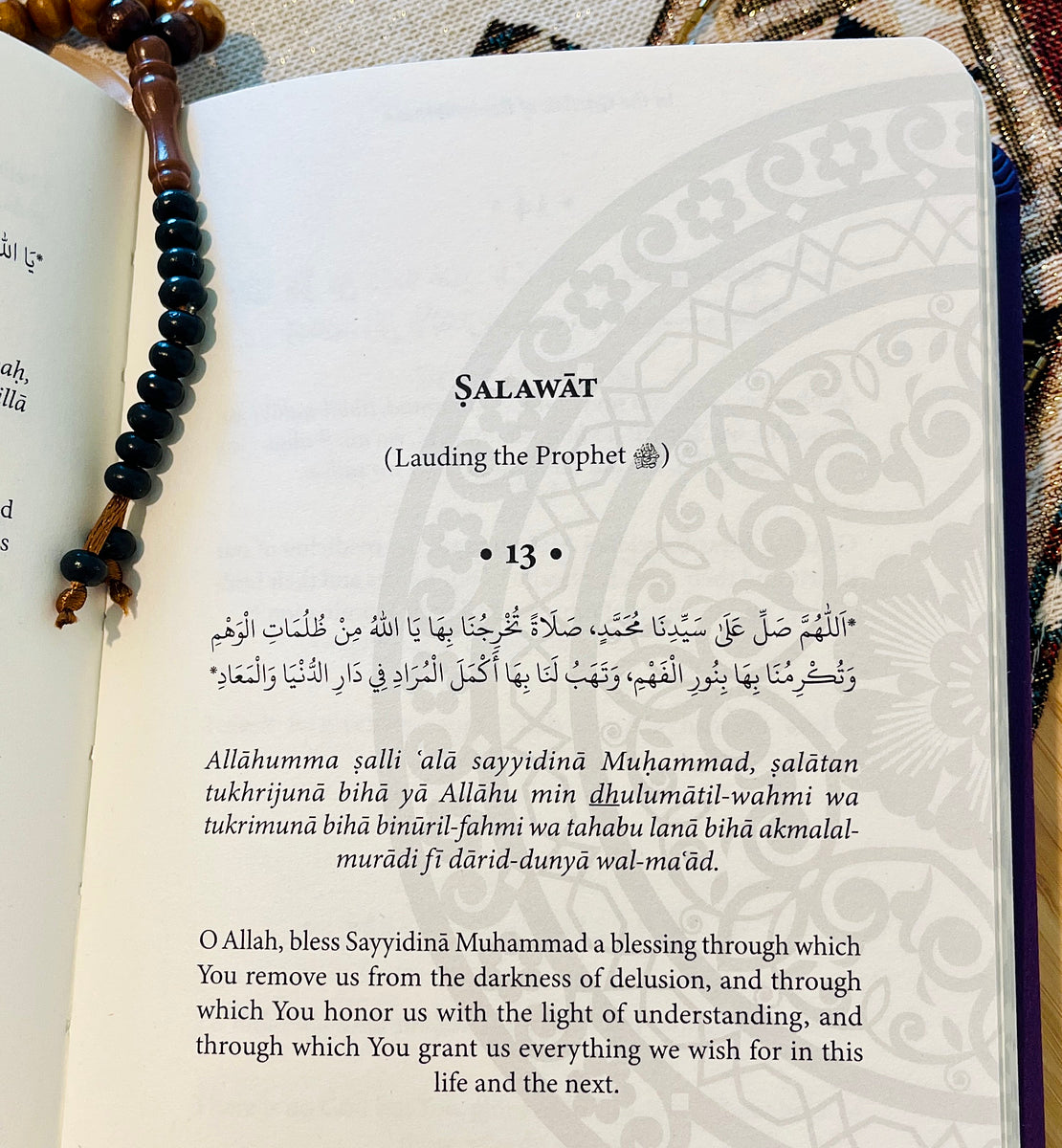 Allāhumma ṣalli ʿalā sayyidinā Muḥammad, ṭibbil-qulūbi wa dawāʾihā, wa ʿāfiyatil-abdāni wa shifāʾihā, wa nūril-abṣāri wa ḍiyāʾihā, wa ʿalā ālihi wa ṣaḥbihi wa sallim.