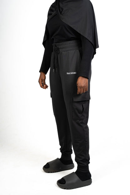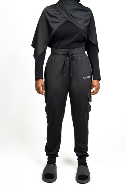 Crafted with four-way stretch fabric, these pants offer unparalleled comfort and flexibility, ideal for any active lifestyle or daily wear. Designed with a high waist for a flattering fit and featuring two expanded cargo pockets, two front pockets, and two zipper pocket for bounce-free phone. The high ankle provides a secure fit, ensuring these joggers stay comfortably in place all day long. Elevate your wardrobe with these versatile pants, perfect for embracing both comfort and s