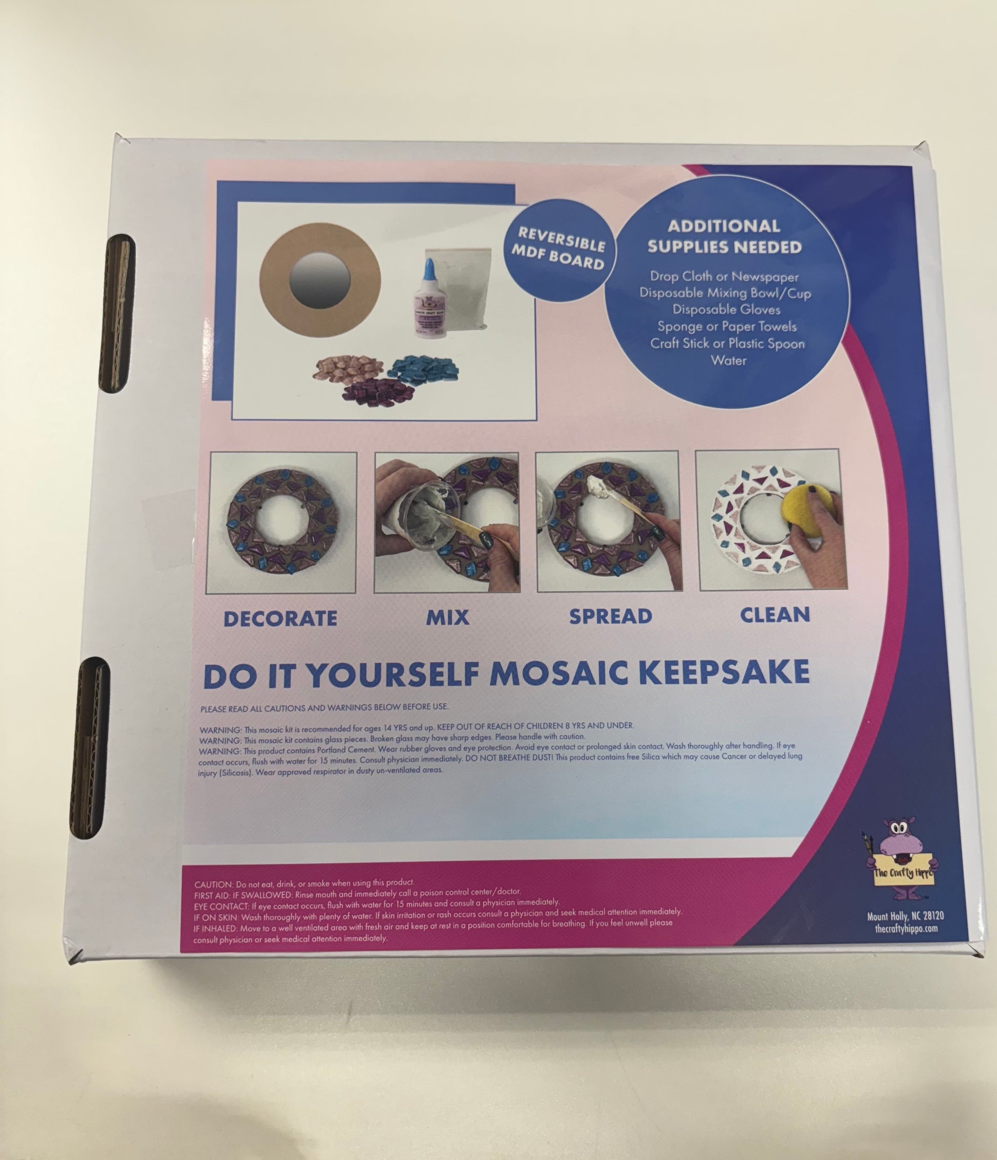 Crafted with care by The Crafty Hippo, this kit promises hours of artistic enjoyment without the need for prior mosaic experience. Perfect for personalizing your space or creating a thoughtful gift, this kit provides a unique way to add a touch of elegance and charm to any room.