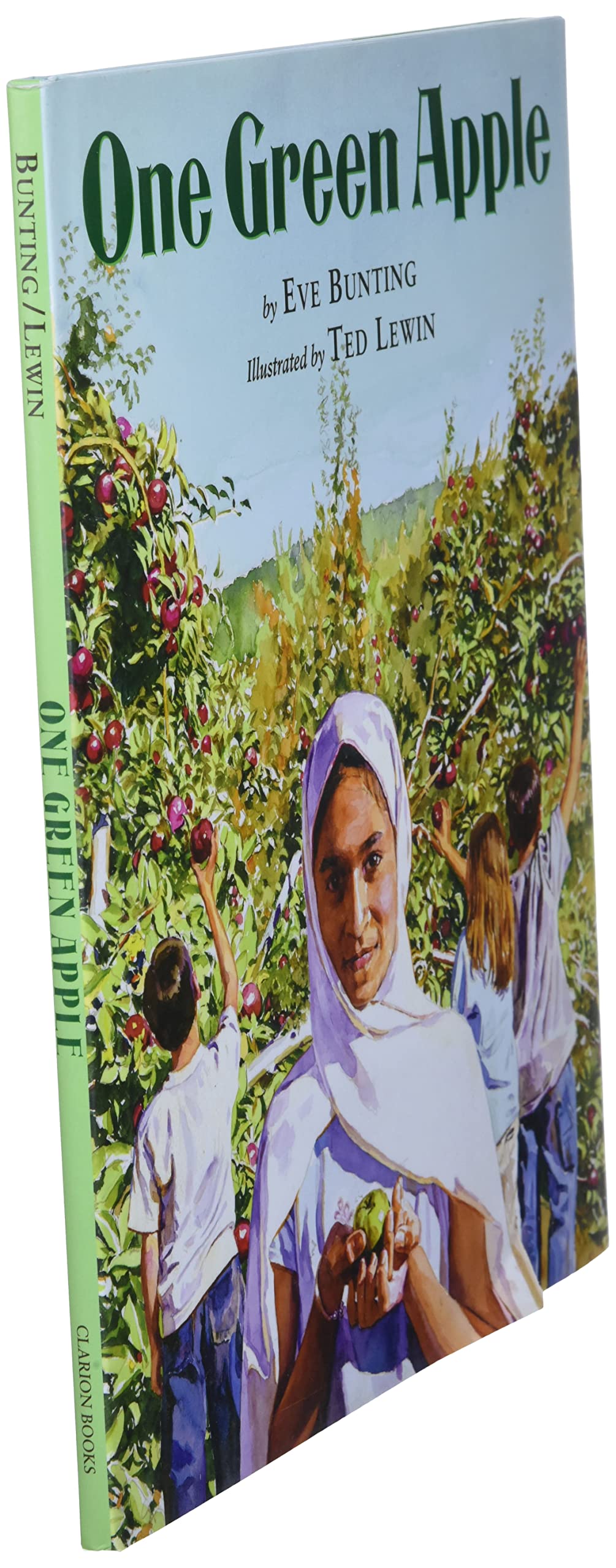 Ted Lewin’s gorgeous sun-drenched paintings and Eve Bunting’s sensitive text immediately put the reader into another child’s shoes in this timely story of a young Muslim immigrant.