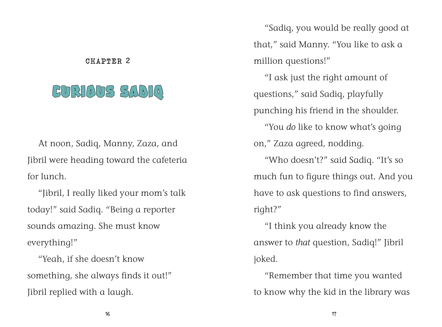 Sadiq is eager to join the new school newspaper. He’s a good writer, and he likes asking lots of questions! But when Katy, the student editor-in-chief, hands out reporting assignments, Sadiq doesn’t agree with her idea of “news.” Instead of reporting on important things happening at school, Katy seems intent on embarrassing people! Can Sadiq find the courage to speak up and replace the paper’s gossip stories with real news? Somali American author Siman Nuurali offers another installment in the delightful Sadiq chapter book series.