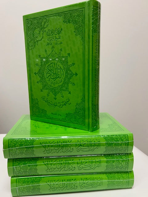 These Musahif have color coded tajwid text in Uthmani script. They have beautiful faux leather covers and come in many vibrant colors.